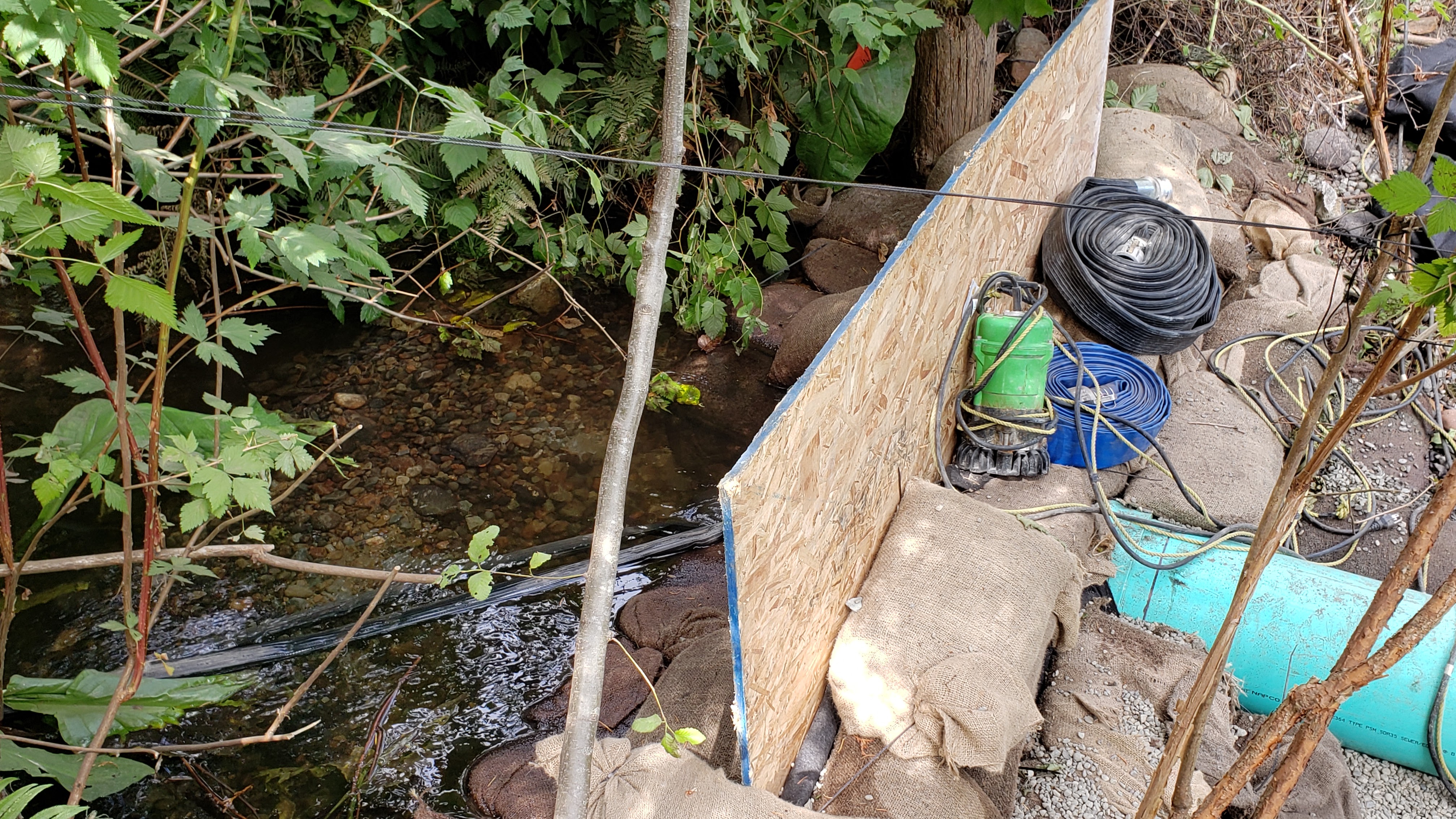 The procedure began with blocking the creek above the bridge, and installing a pipe to allow the stream to flow naturally to below the construction site. In addition, a net placed up and down stream from the bridge prevented trout from entering the work area.