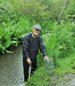 The second is a very small pool just above where the creek falls over logs and is deep enough to hide trout. The trap needed to be hidden under the bank overhang. Daryl found a healthy 95 mm trout there.