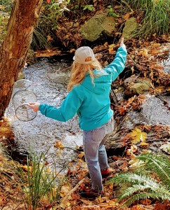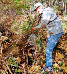 One of the new sites is hidden inside the riparian zone and provides a pool just under where the creek flows over well placed logs. Here Jordyn lands the gee trap directly into the pool where four trout were found.